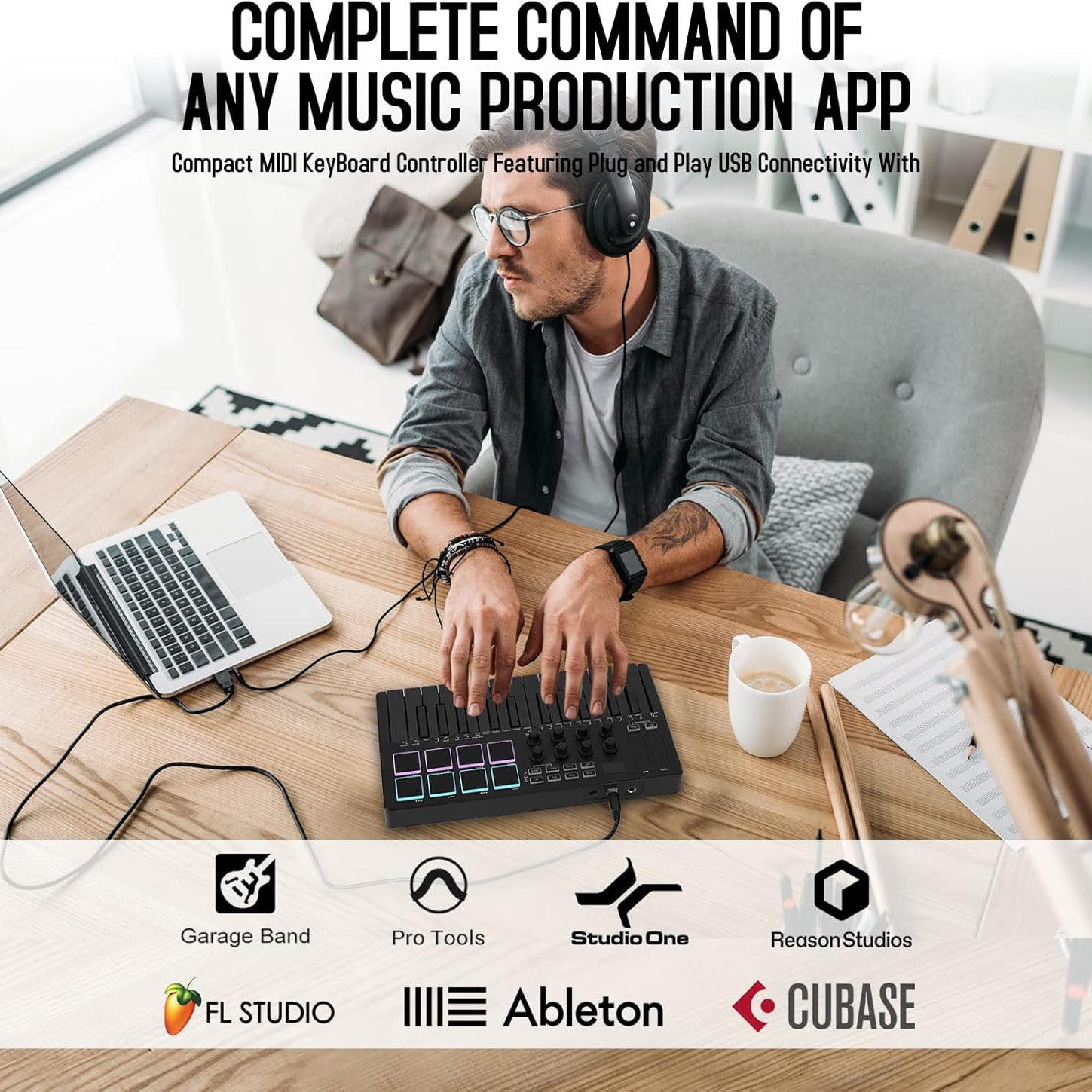 USB-powered MIDI controller with 16 velocity-sensitive mini keys—perfect for studio production, virtual synthesizer control, and beat production.